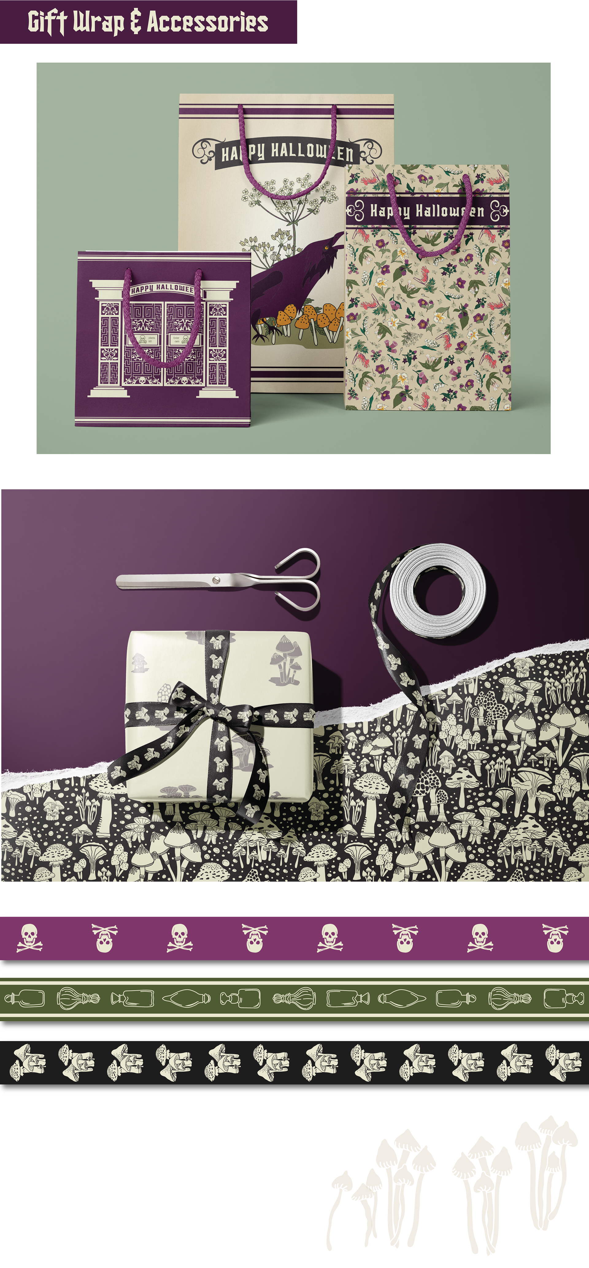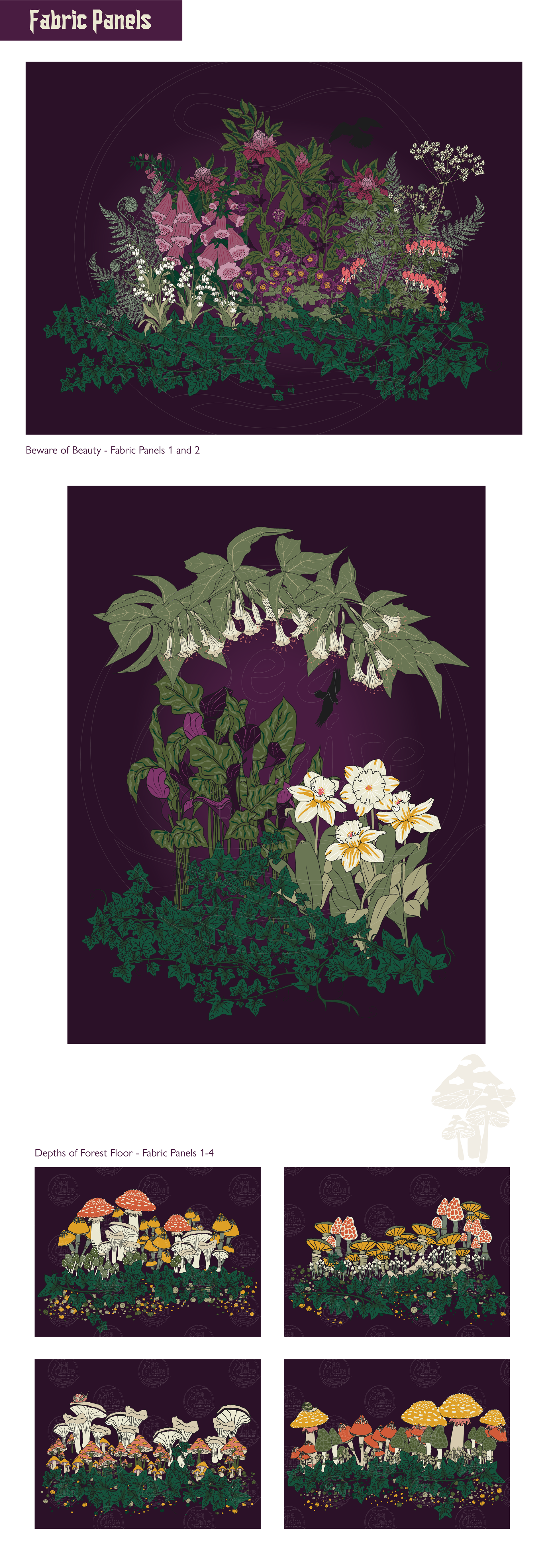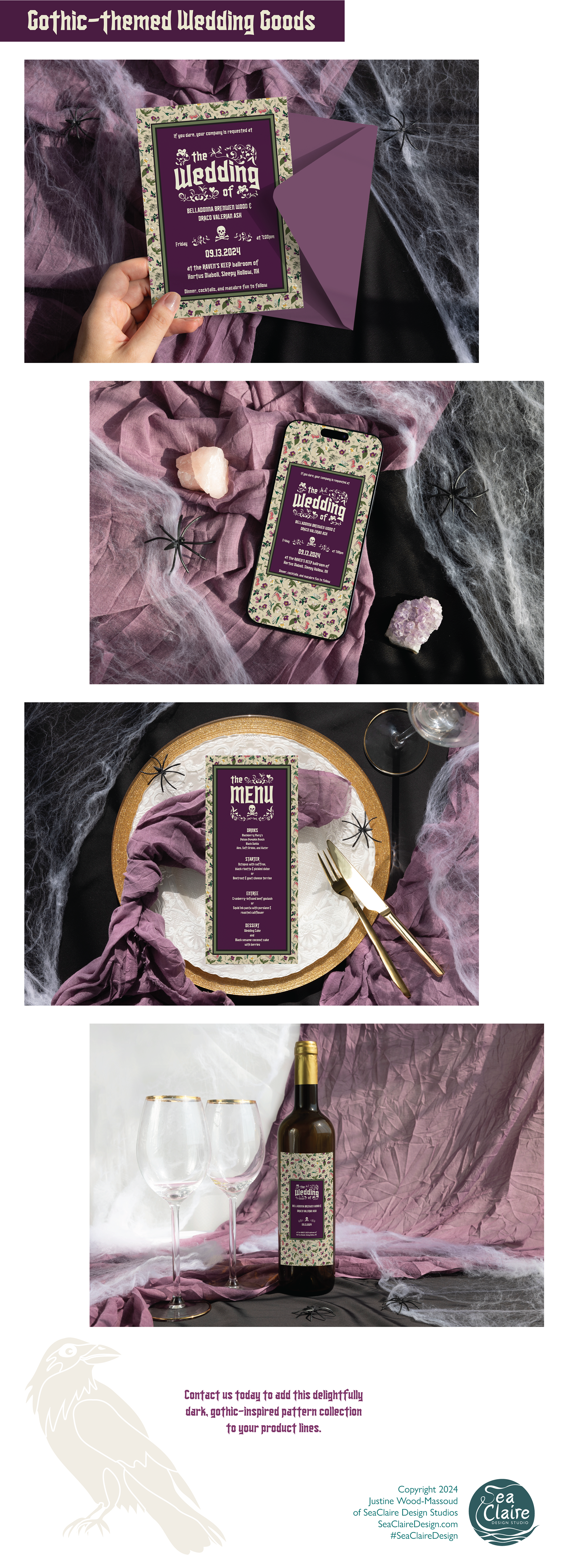 Many of these Gothic and Halloween-inspired surface pattern designs are also available on products found in our Etsy Store. Click the Etsy social media icon to go directly to the store.