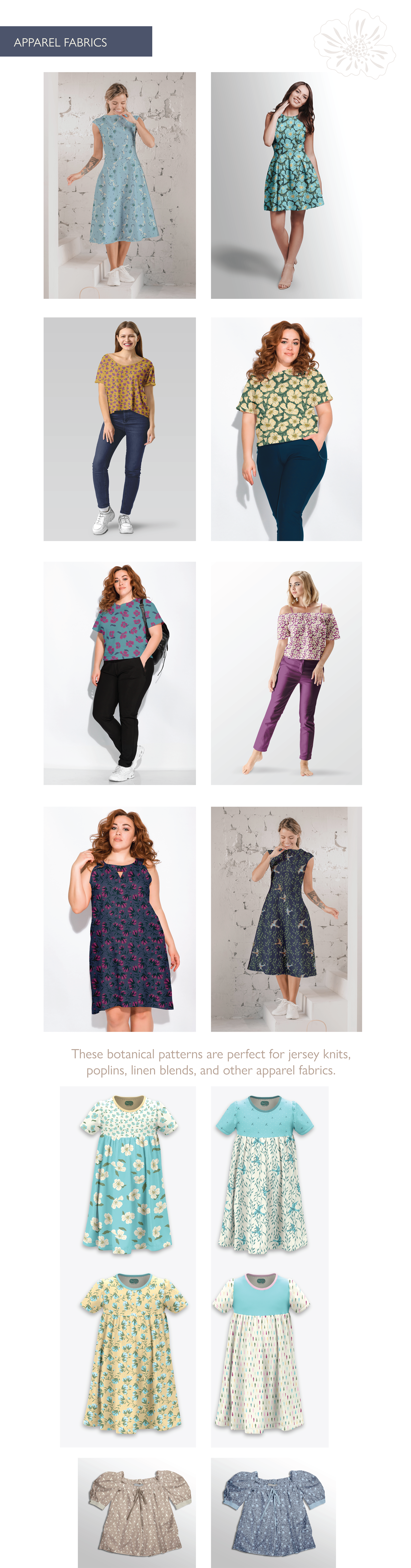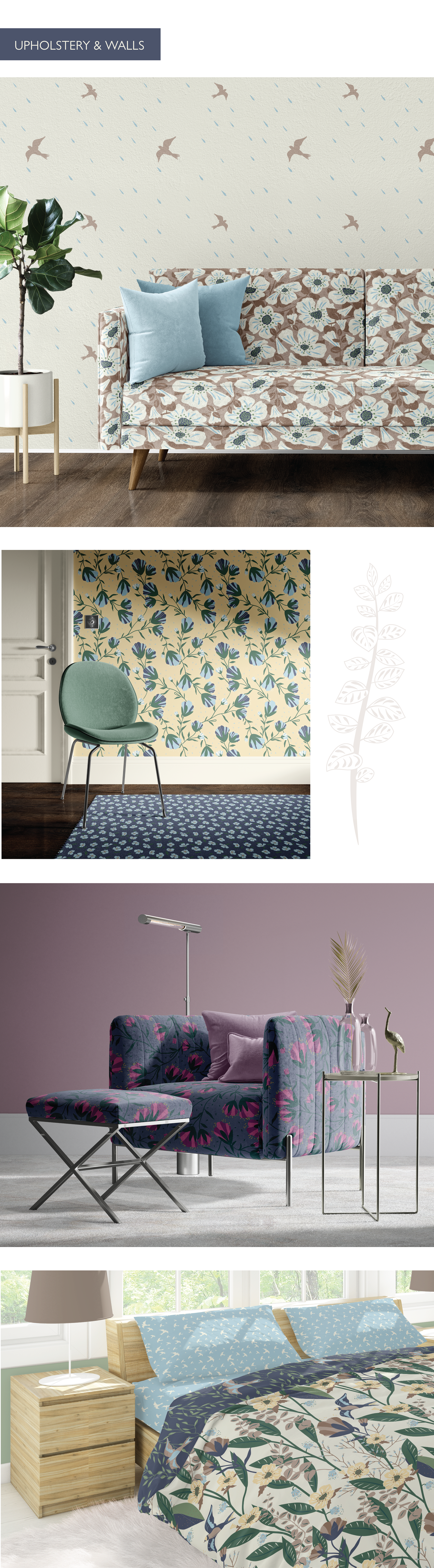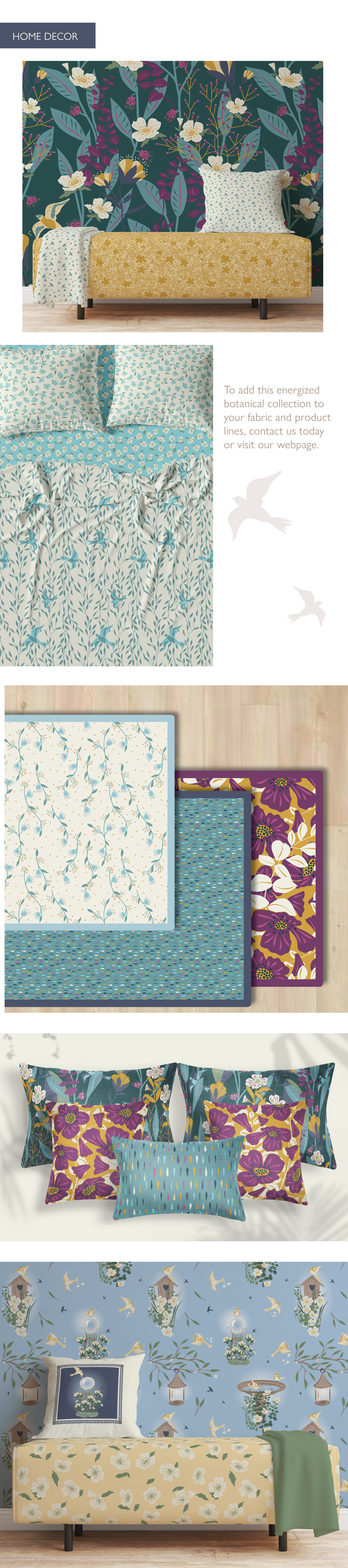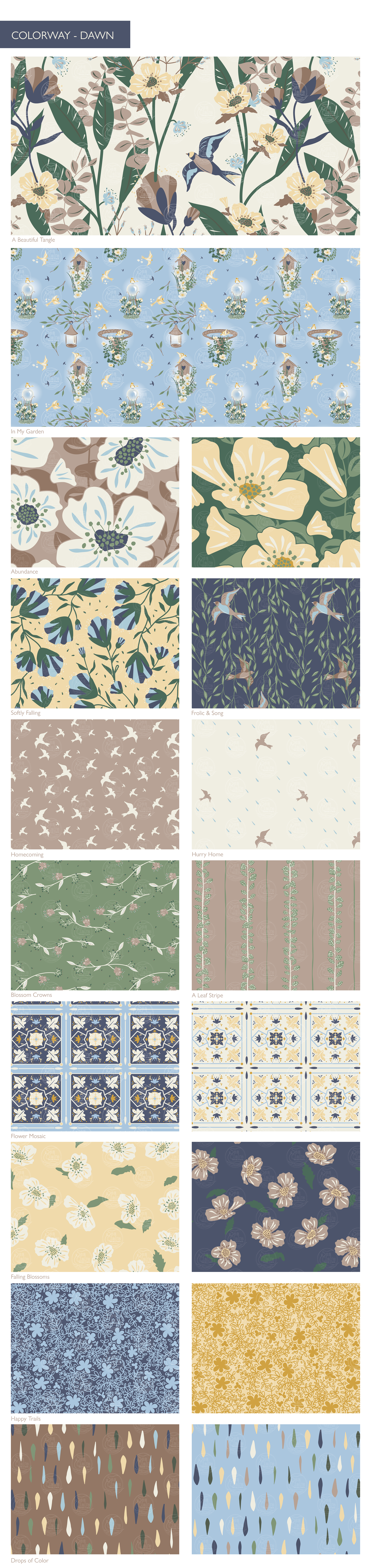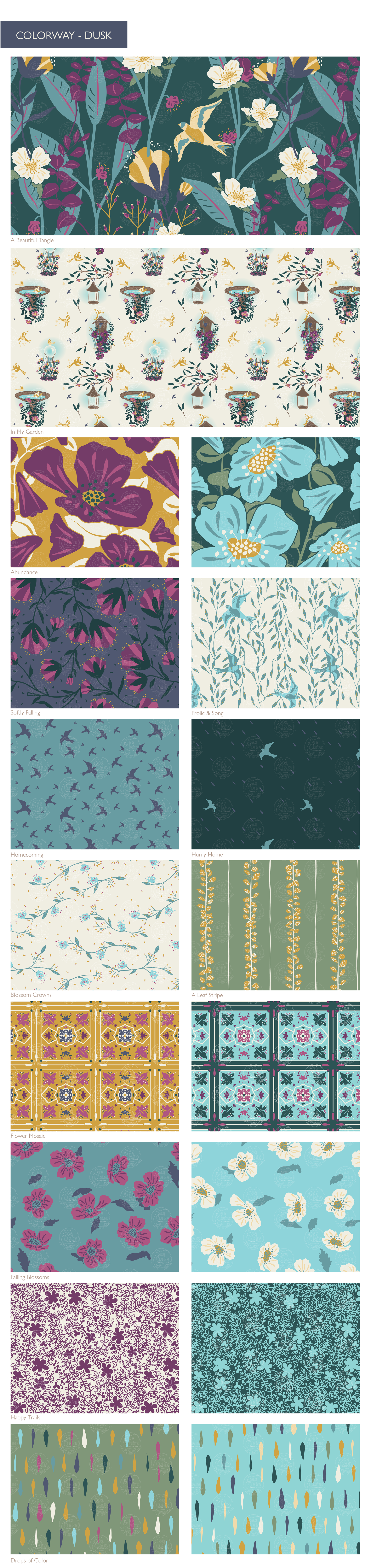 A surface pattern design collection for wallpapers, fabrics, and home textiles. Inspired by the beauty of my garden and the whimsy of mid-century design.