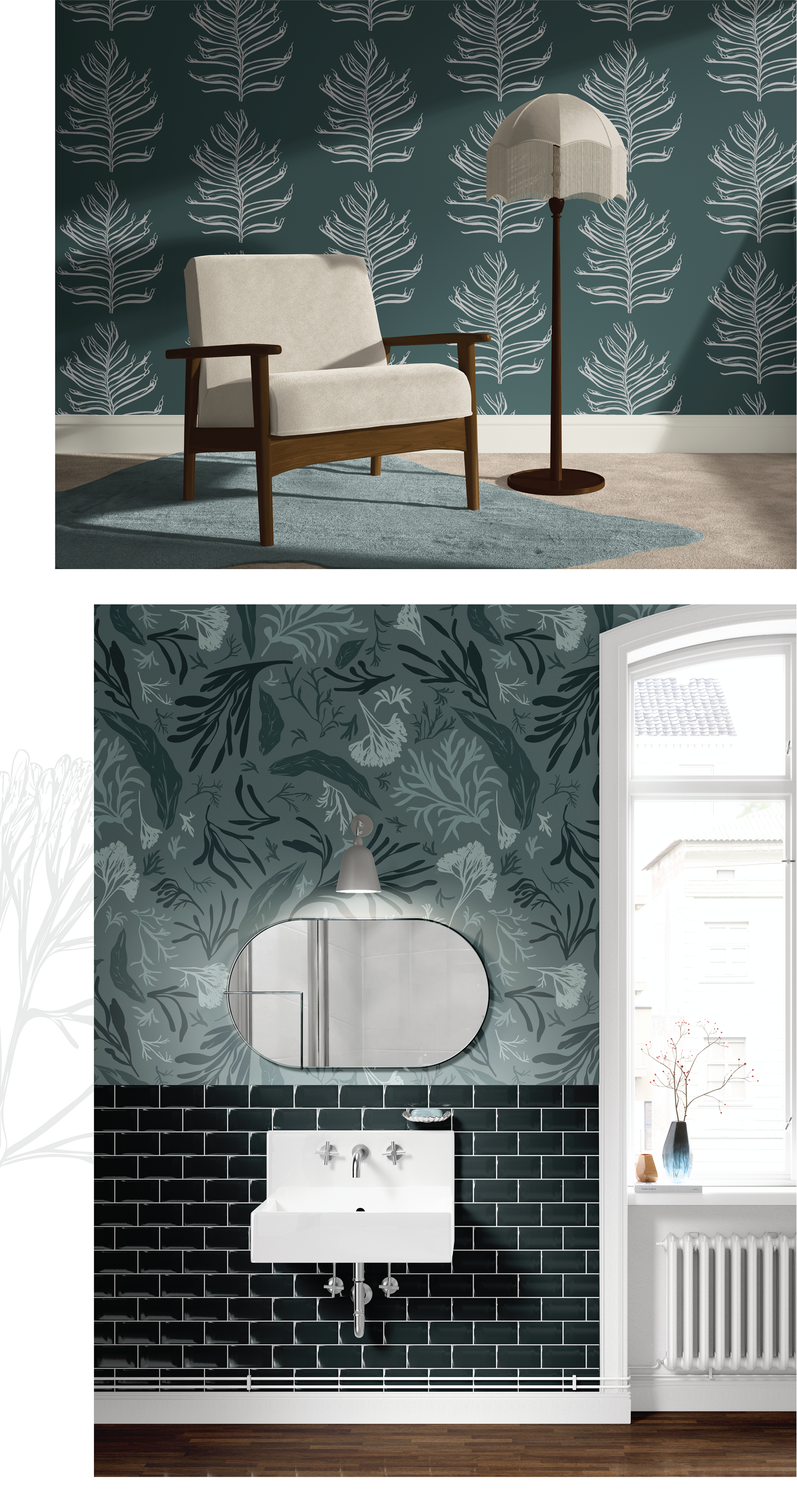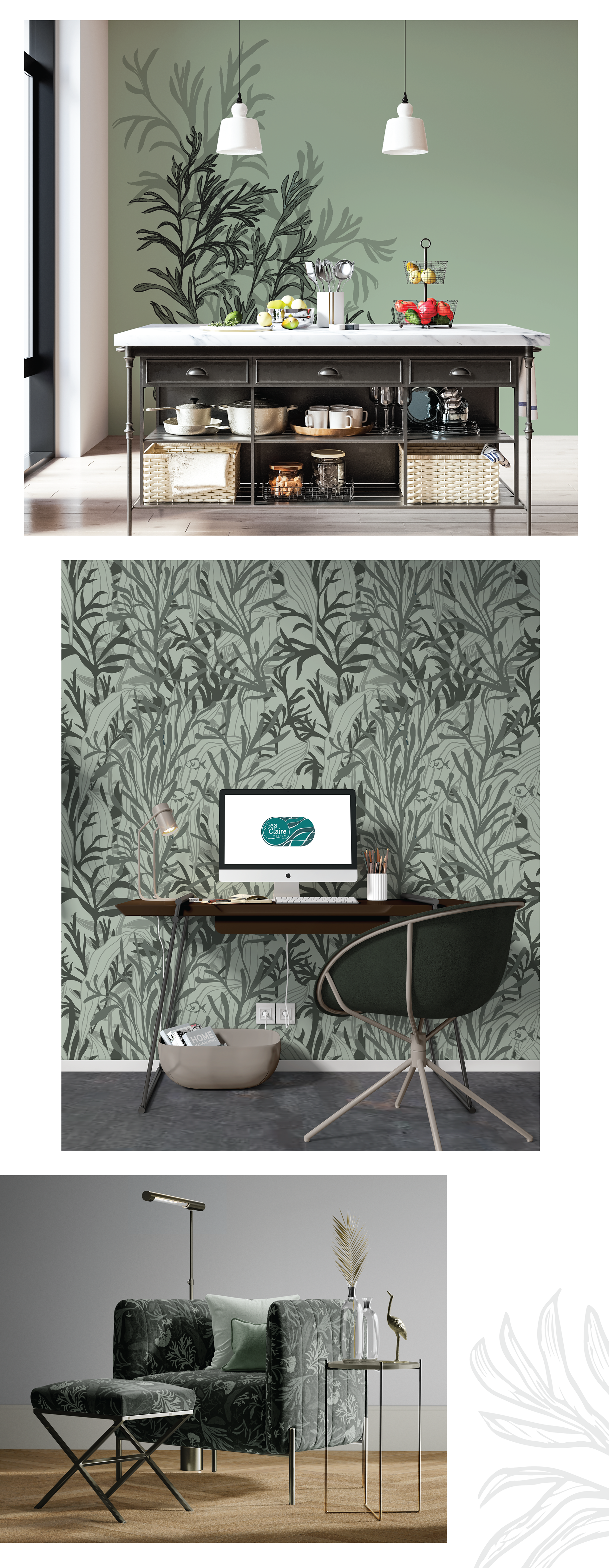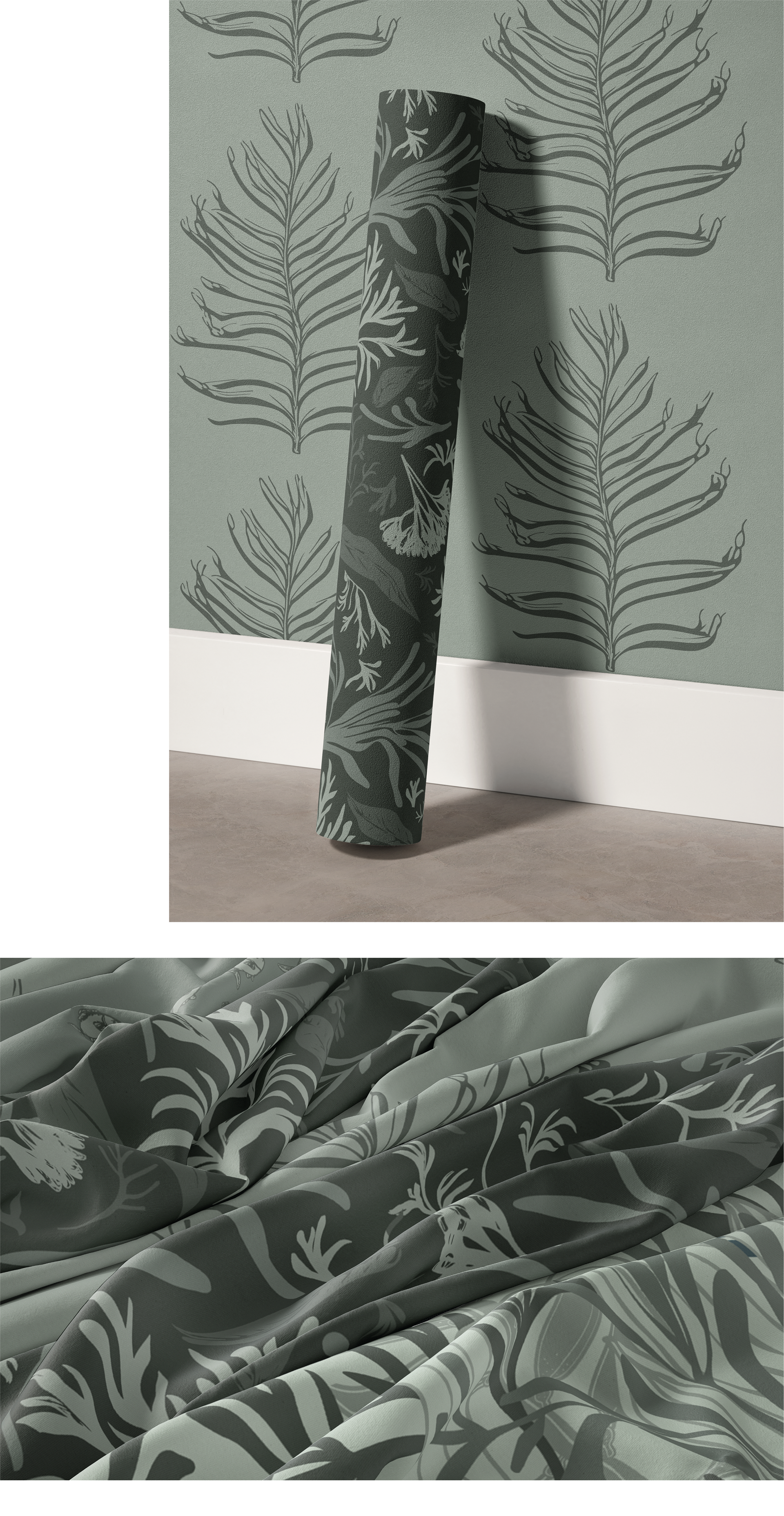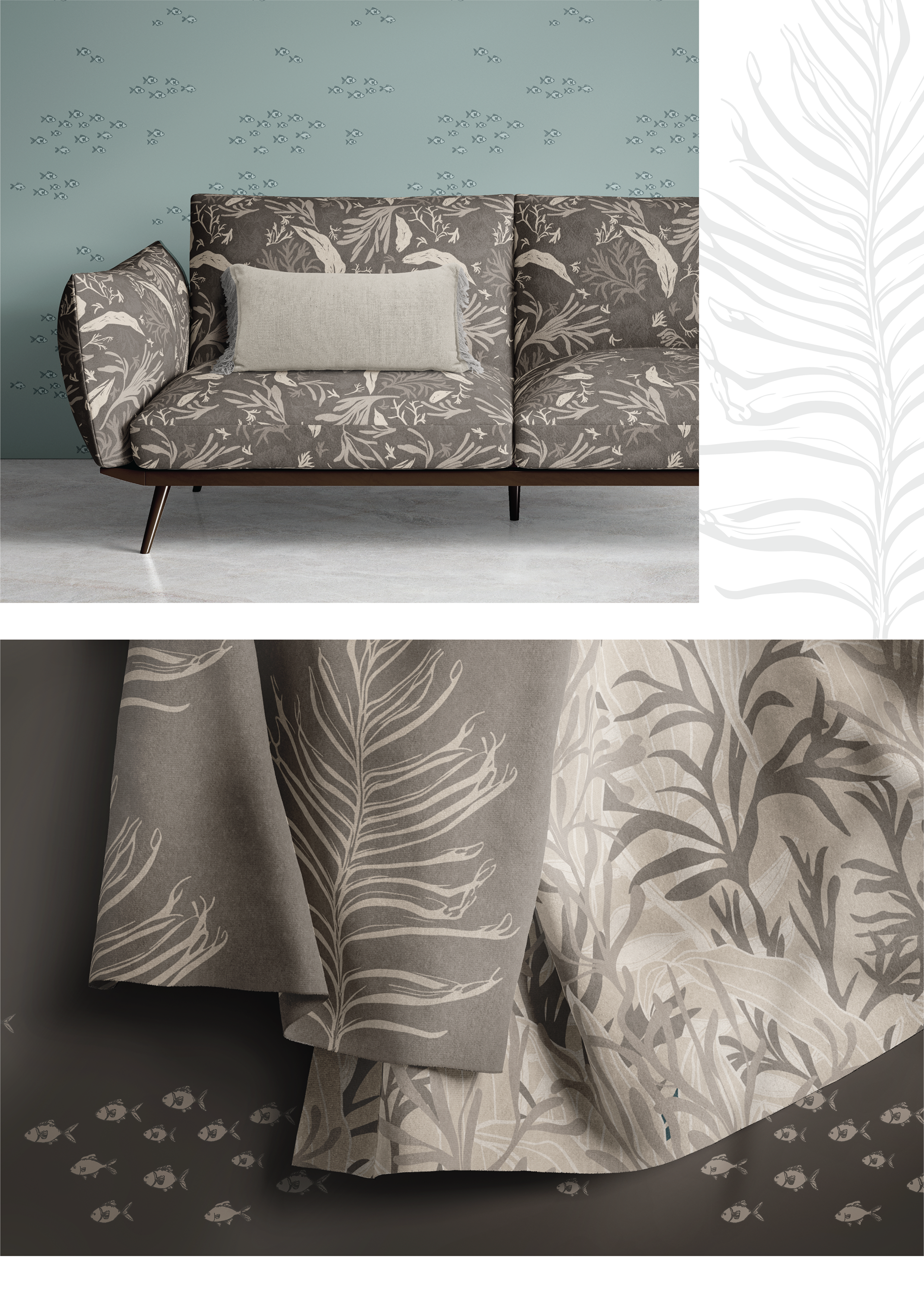 A surface pattern design collection for murals, wallpapers, fabrics, and home textiles. Inspired by the beauty and grace of the ocean.