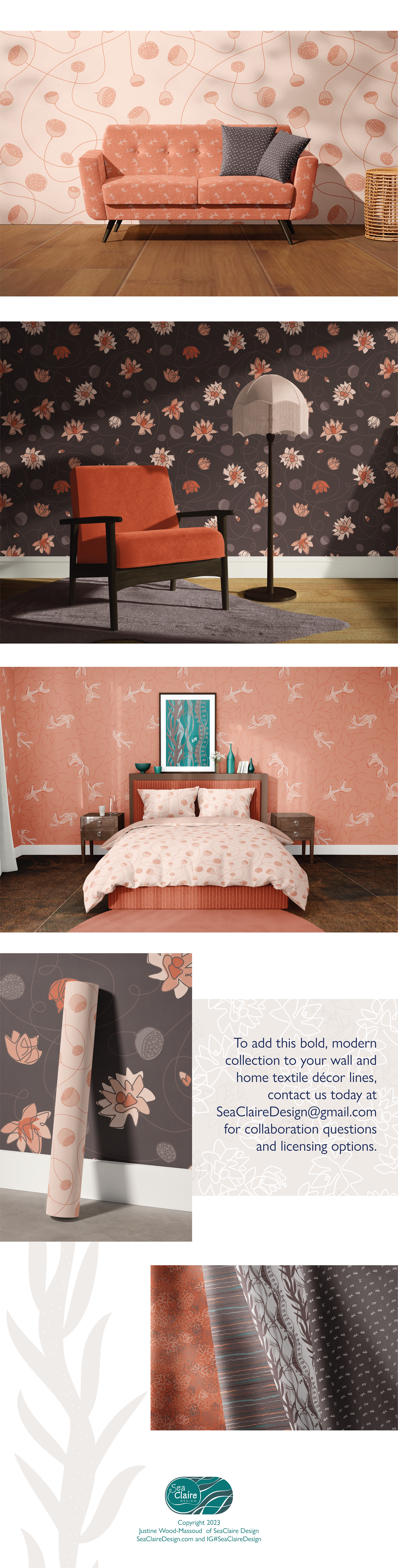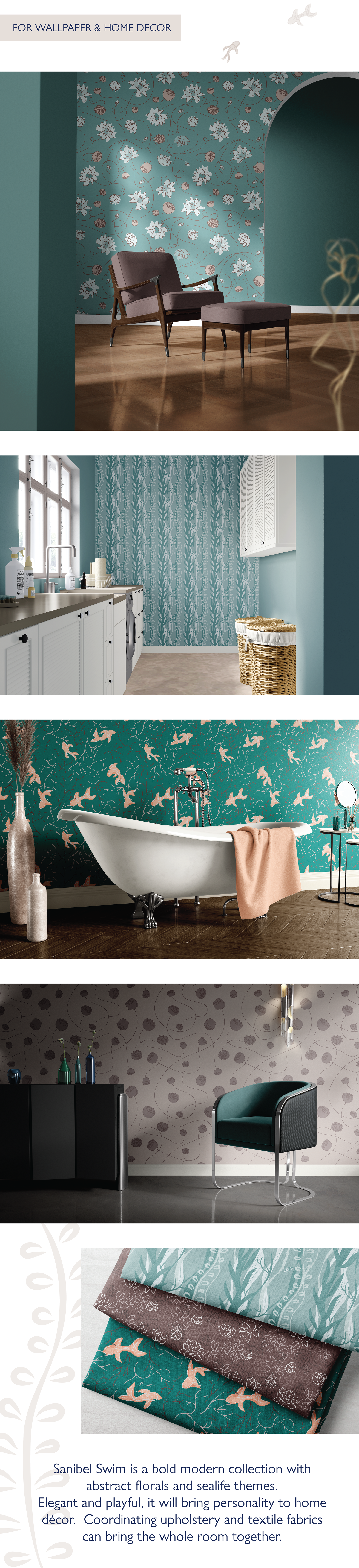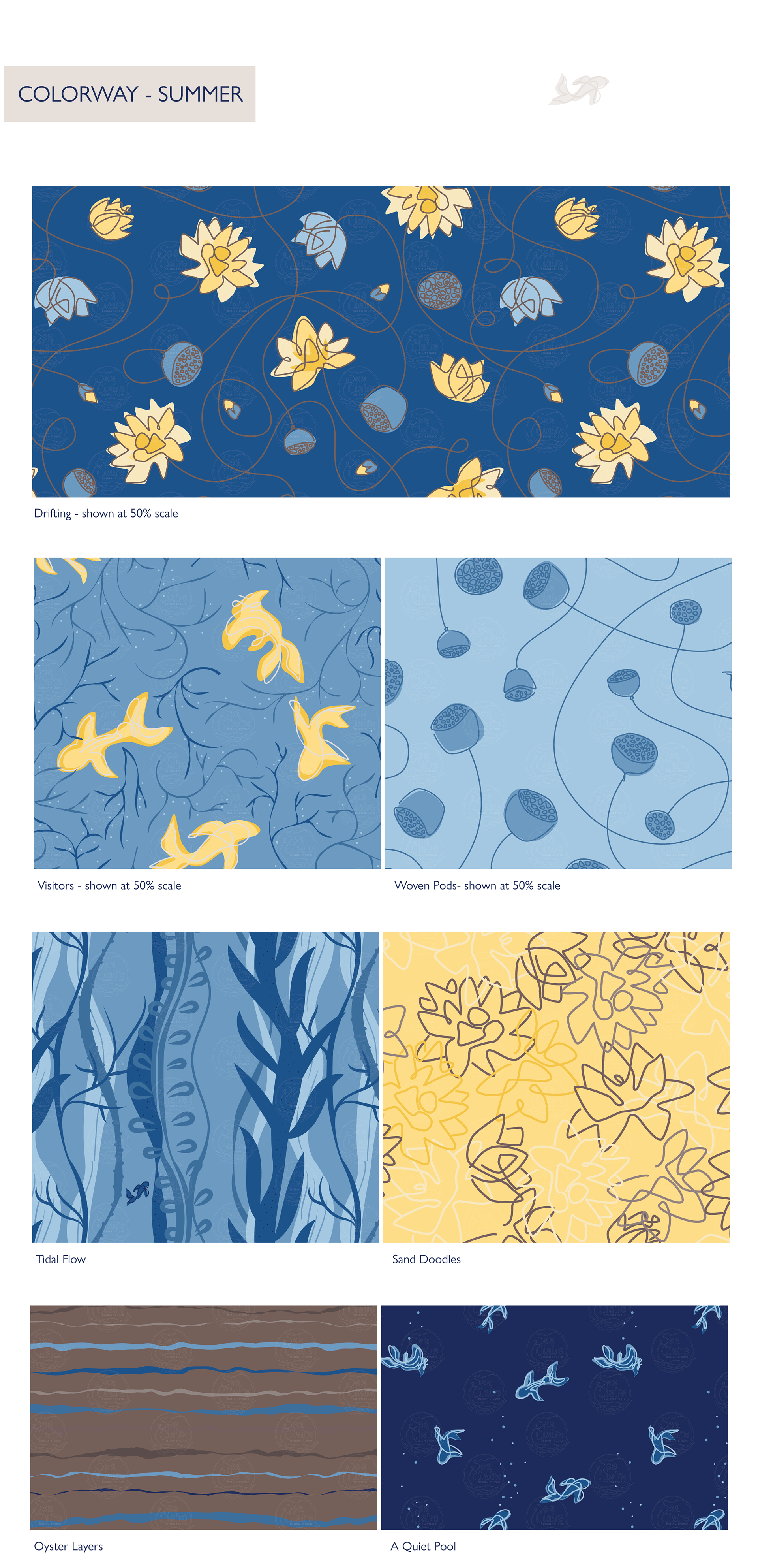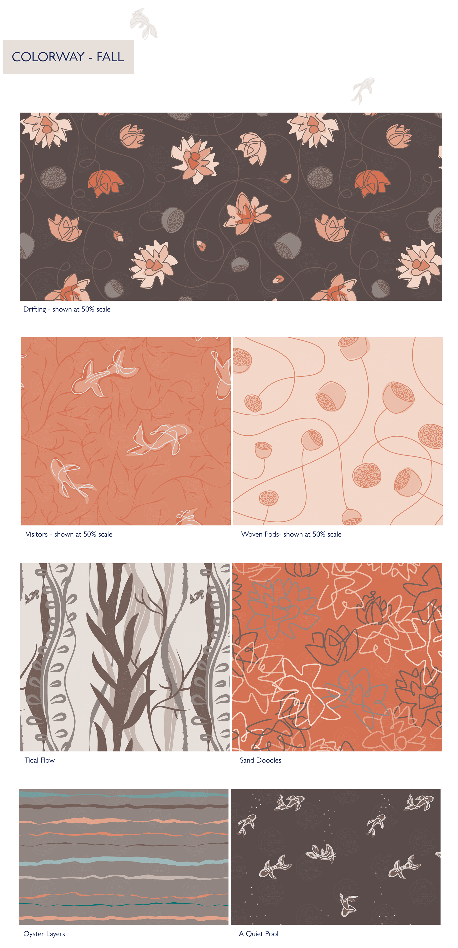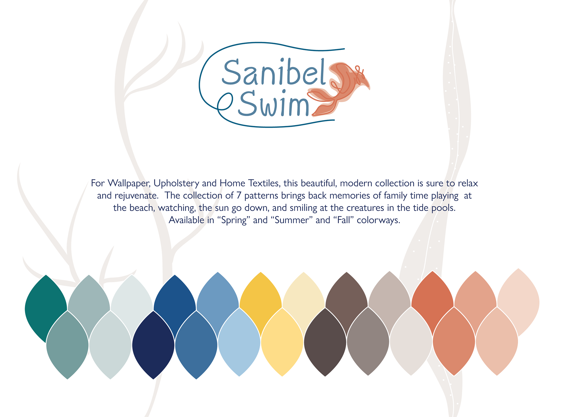 A surface pattern design collection for wallpapers, fabrics, and home textiles. Inspired by the beaches, sunsets, and tide pools of Sanibel Island.